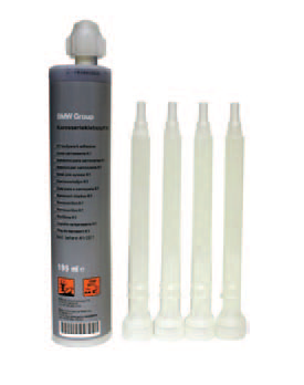 Adhesive for mounting body parts. 195 ml/6.59 fl oz. One-component structural adhesive for repairing weight-reduced aluminum front section components (GRAV) and for bonding bodywork components made of aluminum.
