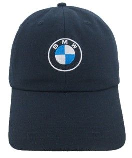 BMW Navy RPET Hat. BMW Embroidered, 100% Recycled, Unstructured Hat in Navy Brushed Twill Fabric with metal slider closure.