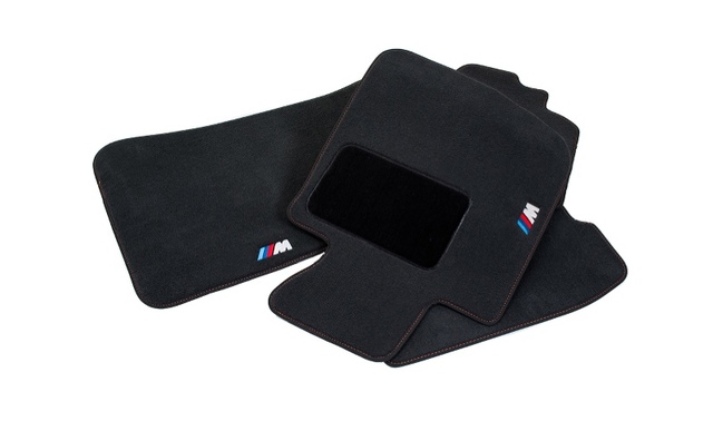 E70 X5M, E71 X6M M Embroidered Floor Mats With Heel Pad. These thick pile- embroidered floor mats are embossed with the m logo- and held in place with a retention system and flocked back. Made with safety in mind they also resist water and staining while adding cushioned comfort. Black.
