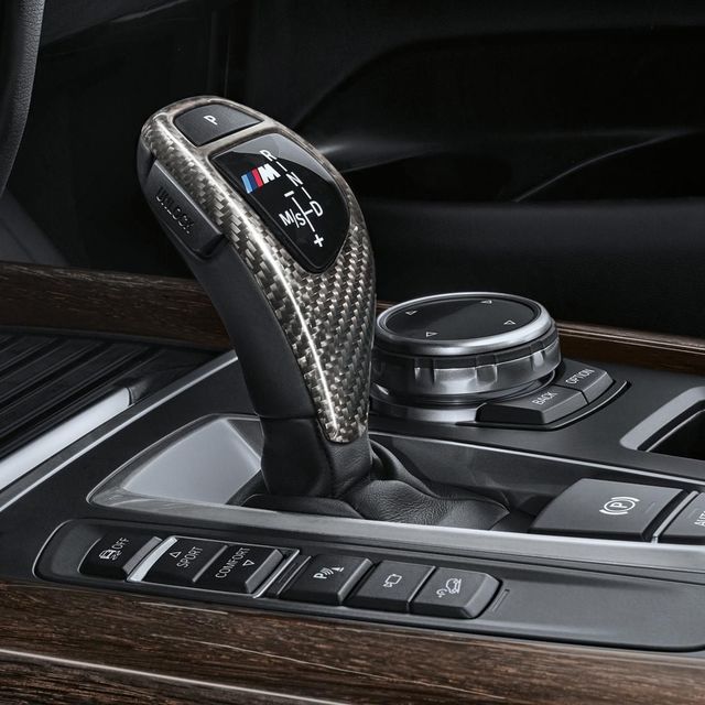 F15 X5, F16 X6 M Performance Carbon Fiber Selector Lever - Sport Auto Transmission. An innovative and unique design taken from the world of motorsport- the selector lever is made from real carbon fiber and has the m performance banding located in the selector graphic.