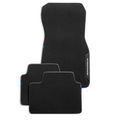 New generation of M Performance floor mats. 4-parts (front and rear), velours footmats with trimmed synthetic leather and brilliance seam, with stitched M Performance lettering 3.0 on the textile insert and Giugiaro band. rear: velours footmats with trimmed synthetic leather and brilliance seam, equipment with Giugiaro band will be checked black Velours like series.
