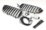 G30 5 Series Iconic Glow Kidney Grilles Set - Chrome. The grilles glow when the car is opened, while driving, and before it is locked. The LED lights are integrated in the radiator grille so that the frame and the bars are illuminated with white light from above. The lights illuminate the area in front of the car. Kit includes left and right kidney grilles, control module, wiring harness, fuse, and zip-ties. *Requires Iconic Glow Button (pn 63-17-2-468-335) sold separately.