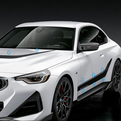 The eye-catching BMW M Performance Decals in Frozen Black give the car a customized and added sporty-character to the BMW 2 Series (G42). The positioning of the strips emphasizes the car's proportions. The precision-fit strips are perfectly coordinated with the car's geometry.