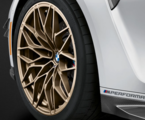 The eye-catching new 20"/21" M Performance forged wheels cross-spoke 1000 M are available in Frozen Gold.. This modern interpretation of a spoked rim captivates with its unique, three-dimensional design.