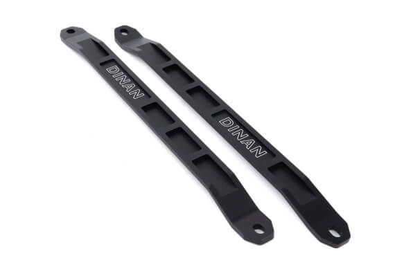 The Dinan G2x Strut Tower Braces provide additional rigidity and sharper handling to the chassis by reducing flex under hard cornering conditions. With more control, spirited driving becomes easier and infinitely more enjoyable. Not only do the braces provide a performance benefit but they replace arguably the biggest eyesore in the factory engine compartment. Transforming the blight that is the factory smashed aluminum tubes into a notable highlight that augments the engine bay rather than detract from it.